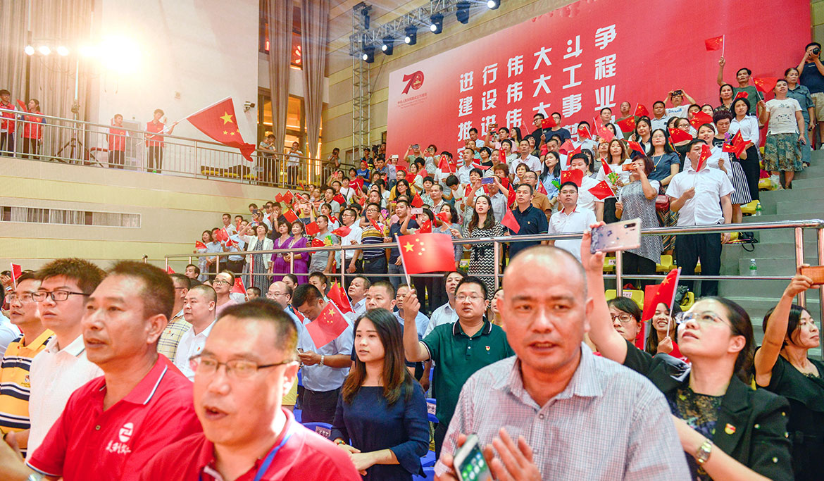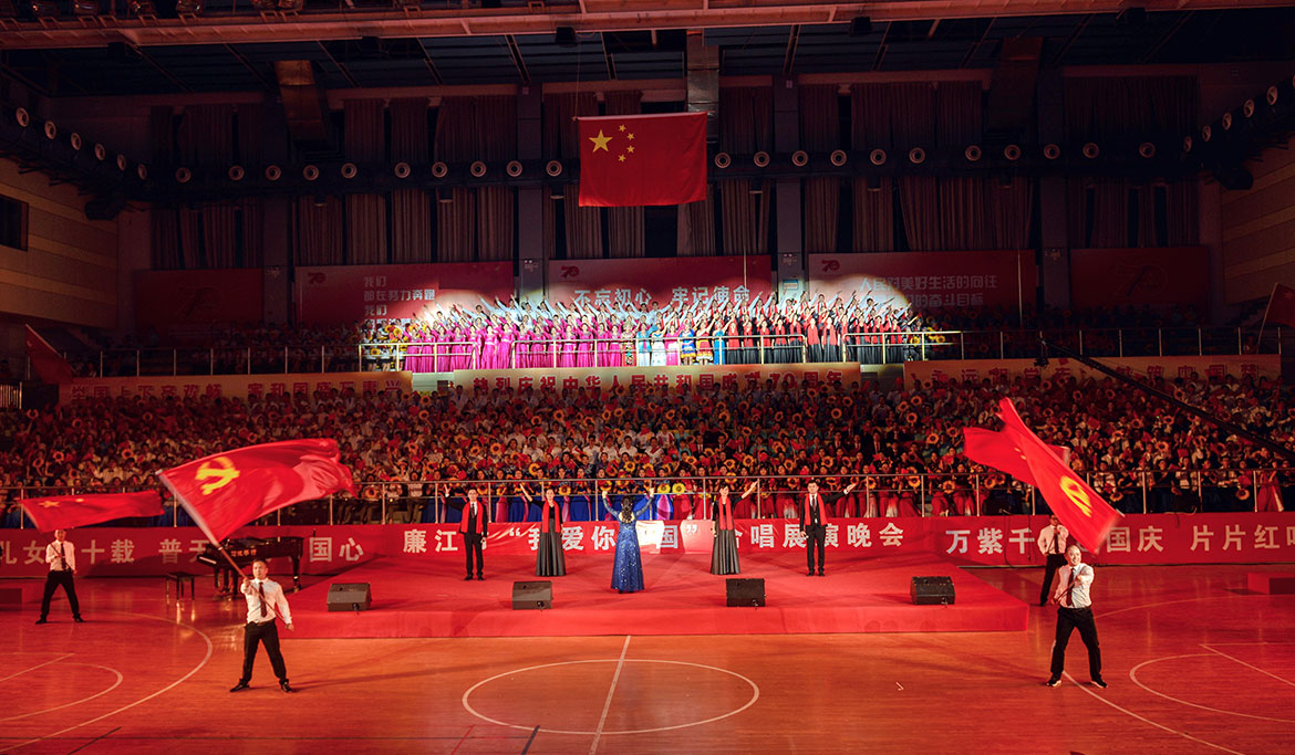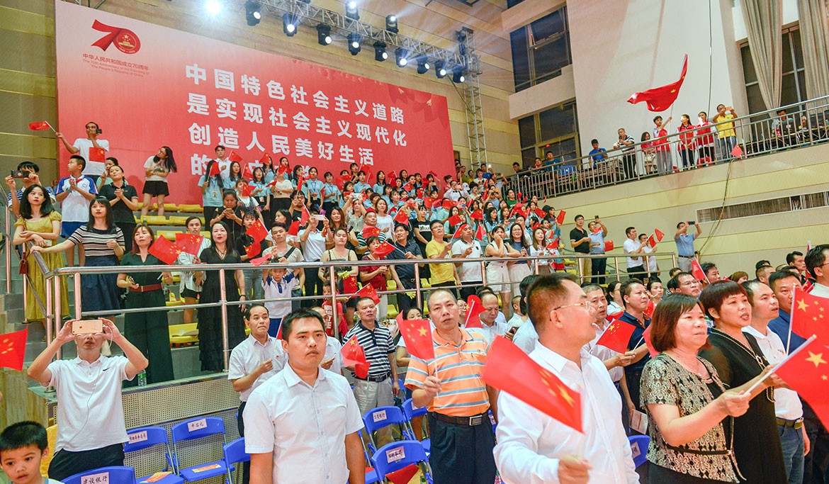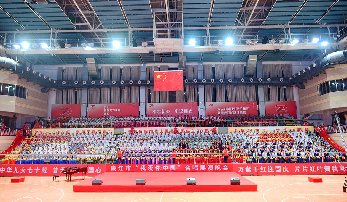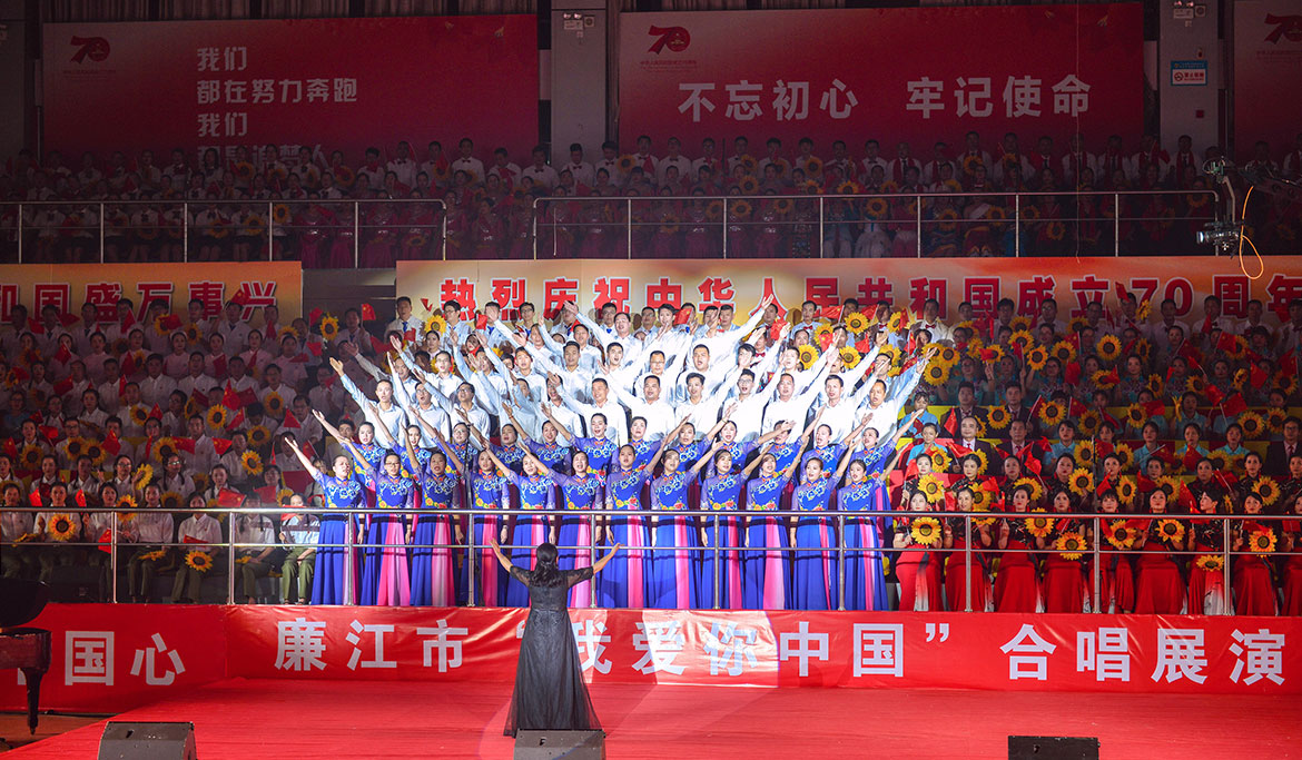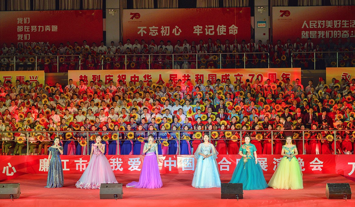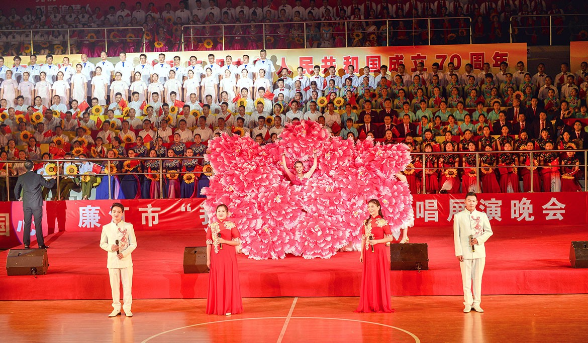 晚會(huì)在雄壯的國(guó)歌聲中拉開展演序幕,來(lái)自各鎮(zhèn)(街道)和各系統(tǒng)的方隊(duì),用膾炙人口的歌曲,歌唱出了新中國(guó)成立70周年的壯麗華章,歌唱出了中華民族偉大復(fù)興的繽紛景象,抒發(fā)了廉江人民斗志昂揚(yáng),定能劈波斬浪造就新英雄、創(chuàng)造新奇跡、續(xù)寫新輝煌的豪邁氣概。