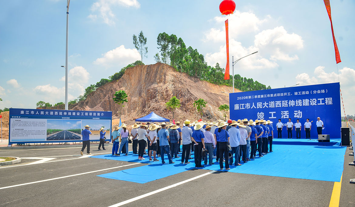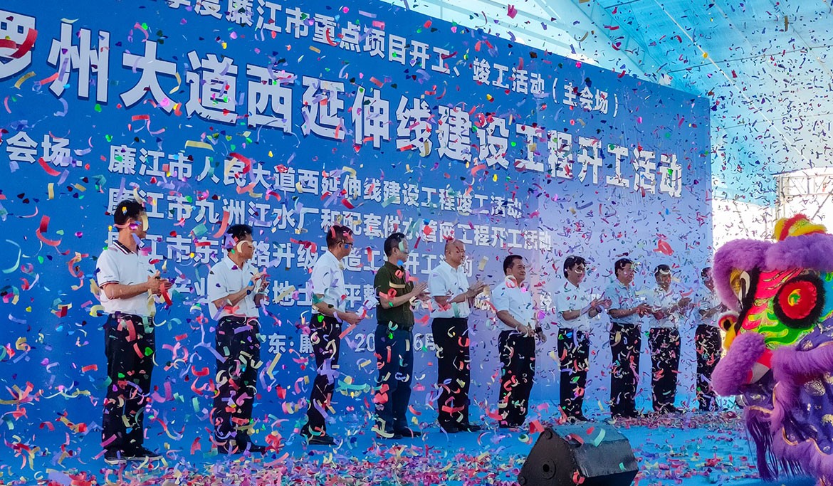 6月30日上午,廉江市舉行2020年第二季度重點項目集中開工(竣工)儀式。羅州大道西延伸線建設工程、九洲江水廠和配套供水管網(wǎng)工程、東環(huán)路升級改造工程、金山產(chǎn)業(yè)集聚地土方平整及一至四號路路燈經(jīng)二路道路工程等4個項目集中開工,廉江市人民大道西延伸線建設工程竣工通車,5個重點項目總投資14.36億元。湛江市副市長陳偉杰,廉江市委書記林海武,市委副書記、市長龐曉冬,市人大常委會黨組書記、主任李世東,市政協(xié)主席吳永光等市四套班子成員參加活動。