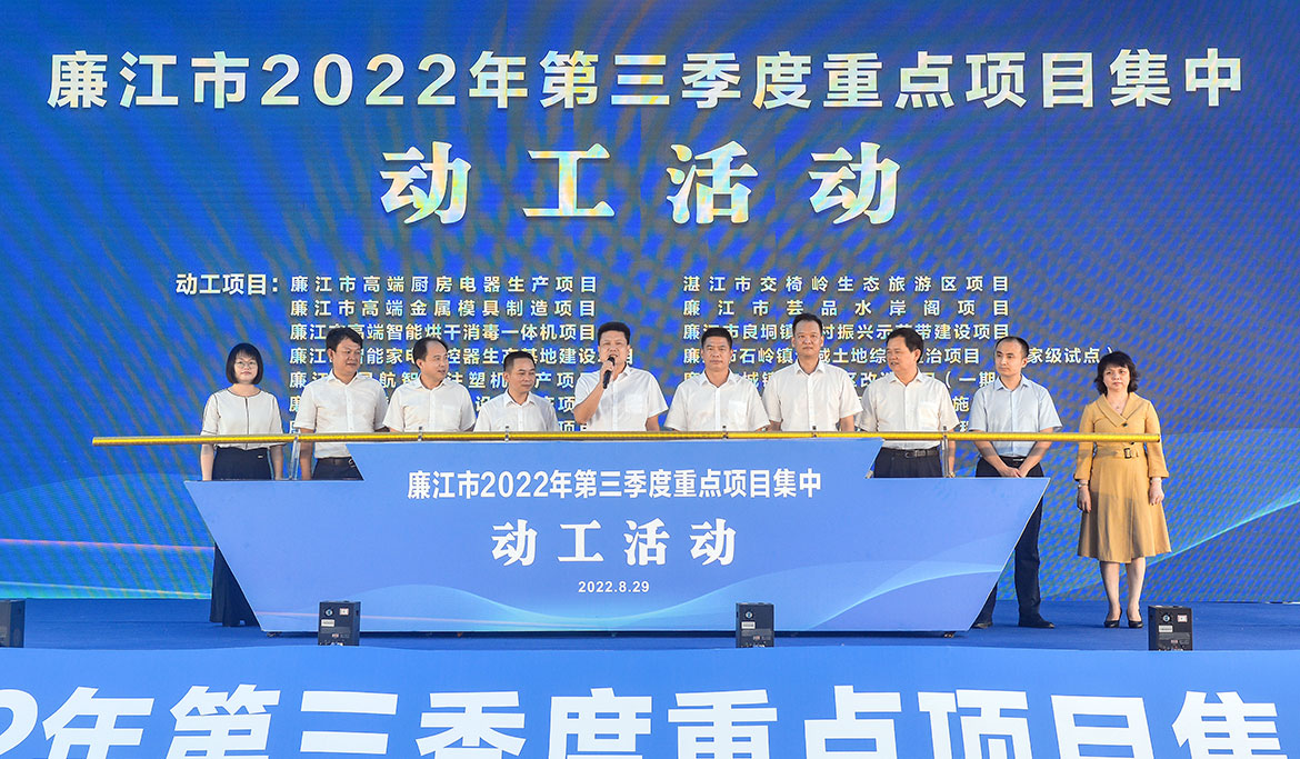 8月29日上午,我市舉行2022年第三季度重點項目集中動工活動。這批項目的動工建設,既是廉江市招商引資成果的一次集中展示,也是搶抓第三季度施工建設黃金期的一次動員號令,為廉江高質量發(fā)展注入更強勁的動力。