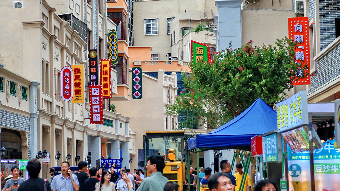如今,全新的廉江鵝街已向市民“招手”,174米長(zhǎng)的街道、45棟民國(guó)嶺南風(fēng)情建筑,容納著鵝飯店、旗行、士多店、奶茶店等行業(yè),街上的一湯一飯、一磚一瓦、一吆一喝,煙火氣息回來(lái)了。