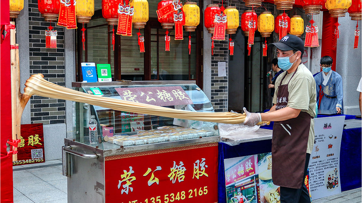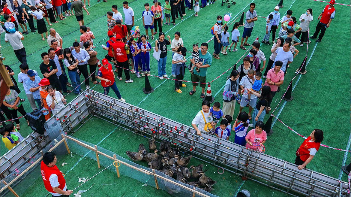 街頭演藝區(qū)里,歌曲、舞蹈、變臉表演輪番上演;文化展示區(qū)內(nèi),羅二粽子、麗波招牌香蘭糕等特色美食手信吸引市民試吃購(gòu)買,書法送字與古琴聲吸引市民駐足觀賞聆聽(tīng);美食品鑒區(qū),旗袍秀+鵝飯展示,奇妙的搭配帶來(lái)新穎體驗(yàn);游戲互動(dòng)區(qū),套中大鵝可免費(fèi)帶走,引得市民爭(zhēng)先恐后丟圈套鵝。